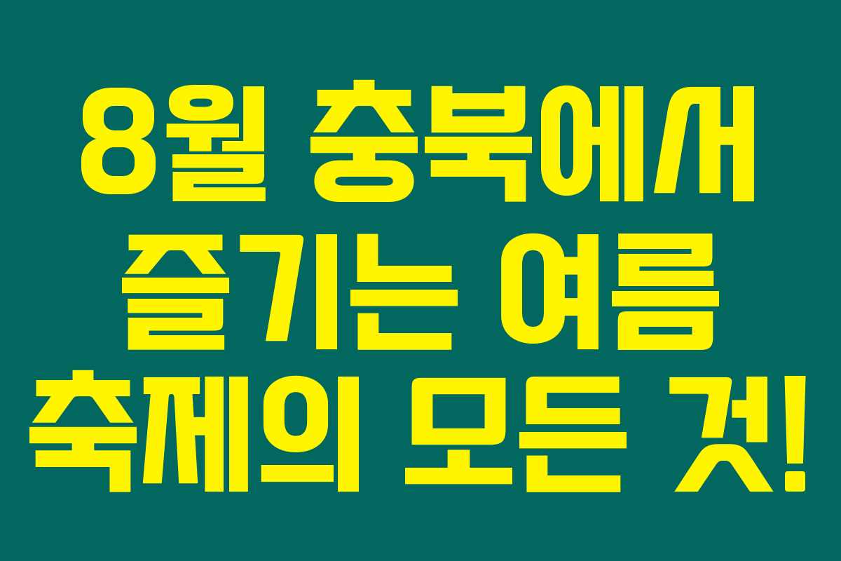 충북의 여름 축제들은 정말 매력을 가지고 있답니다. 다양한 프로그램과 훌륭한 분위기 속에서 시원한 여름을 보내보세요! 각 축제의 특색을 살펴보며 즐거운 추억을 만들어 보시길 바랍니다.
