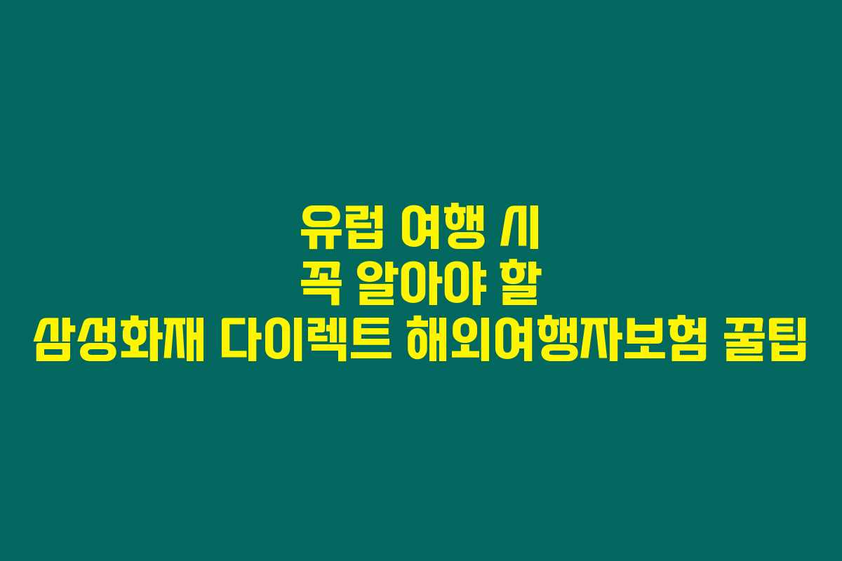 유럽 여행은 사람들에게 특별한 추억을 선사합니다. 그런데 기대와 설렘 속에서도 예상치 못한 사고나 질병은 언제든 발생할 수 있지요. 이런 불안함을 덜어주는 것이 바로 삼성화재 다이렉트 해외여행자보험입니다. 아래를 읽어보시면, 이 보험이 왜 중요한지, 그리고 유럽 여행 시 어떤 점을 유의해야 하는지에 대한 유용한 정보를 확인하실 수 있습니다.