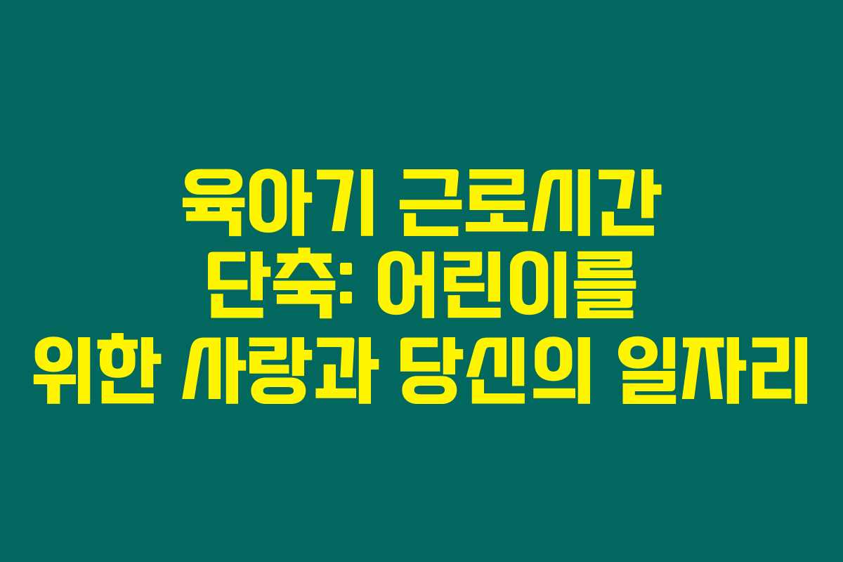 육아기 근로시간 단축을 활용하는 것은 단순히 시간 관리 뿐만 아니라, 정서적인 안정에도 큰 영향을 미친다고 생각합니다.