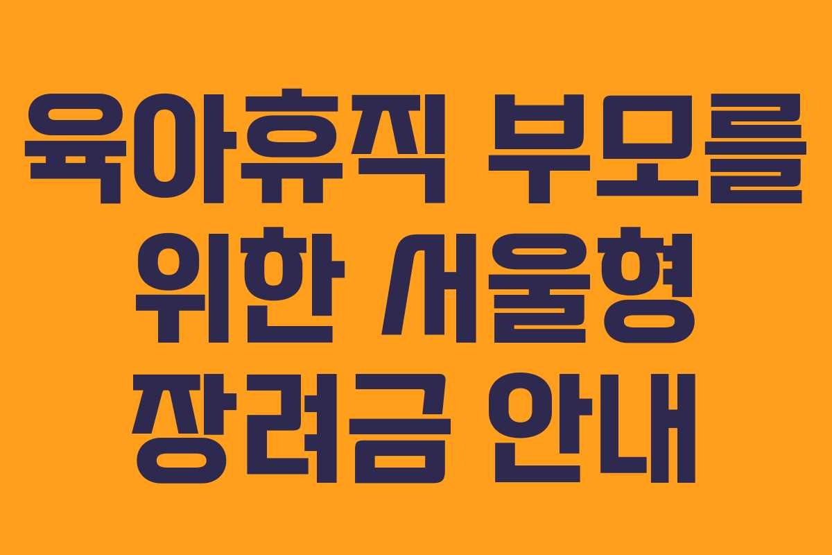 서울형 육아휴직 장려금은 부모가 육아휴직을 이용할 때 소득 감소를 보전해 주기 위해 도입된 제도입니다. 부모 각각 최대 120만 원을 지원받을 수 있으며, 부모가 동시에 육아휴직을 사용할 경우 총 240만 원을 지원받을 수 있습니다.