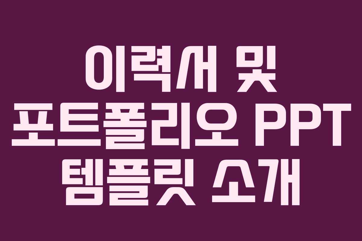 이력서 및 포트폴리오용 PPT 템플릿은 취업 준비와 면접에서 중요한 역할을 합니다. 이 글에서는 세련된 디자인의 PPT 템플릿을 소개하고 무료로 다운로드하는 방법을 안내합니다.