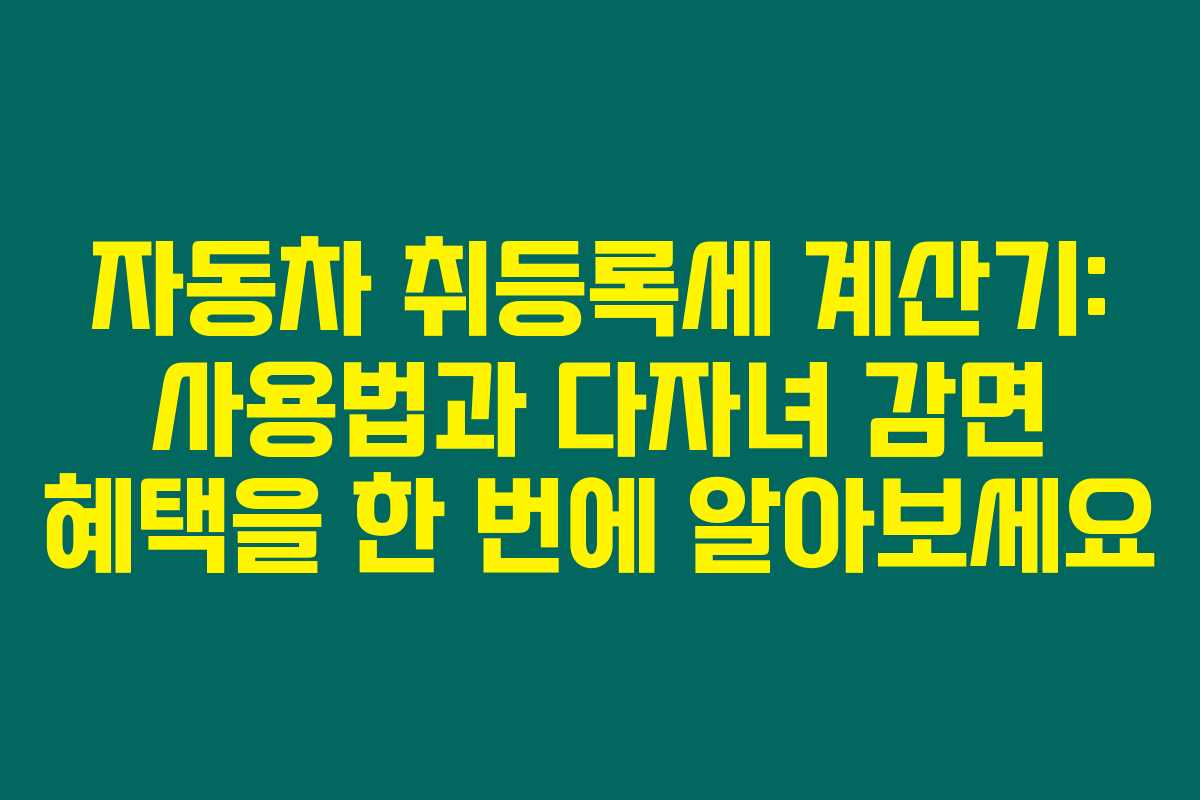 자동차 취등록세 계산기: 사용법과 다자녀 감면 혜택을 한 번에 알아보세요