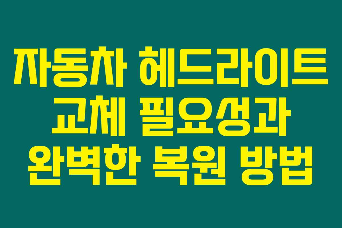 자동차 헤드라이트 교체와 복원은 안전한 운전을 위한 필수 작업입니다. 여러분도 안전한 드라이빙을 위해 정기적으로 상태를 점검해 보세요.