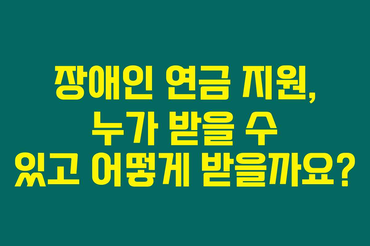 장애인 연금은 많은 장애인들에게 도움을 주는 중요한 지원입니다. 정해진 조건과 절차를 아는 것만으로도 상당한 도움을 받을 수 있습니다. 중증장애인이라면 자격조건과 신청 방법을 충분히 파악한 후 필요한 혜택을 놓치지 않도록 하세요. 다양한 지원 정보를 얻으시길 바라며, 또 다른 질문이 있으시면 언제든지 남겨주세요!