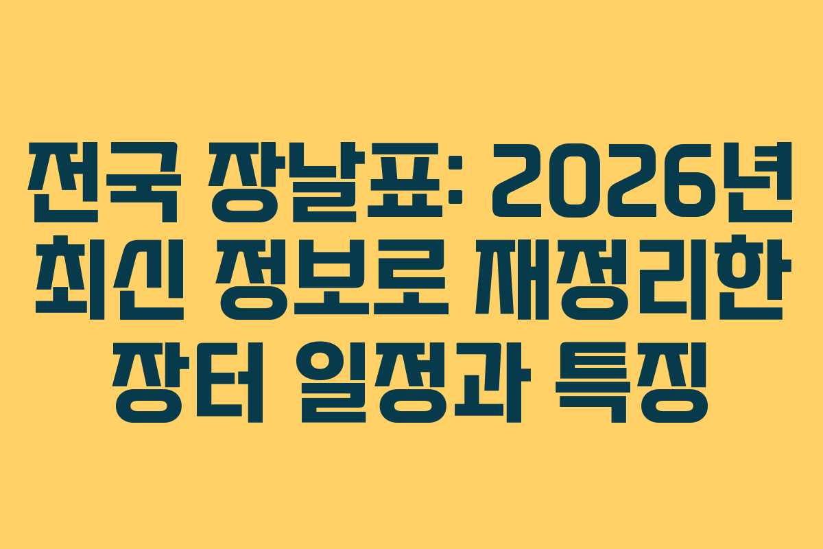 전국의 전통시장과 5일장은 지역 특산물과 독특한 문화가 어우러져 많은 사람들에게 사랑받고 있습니다. 특히 2026년에는 장날 일정이 더욱 체계적으로 정리되어 여행객들이나 지역 주민들이 손쉽게 정보를 접할 수 있게 되었습니다. 이제 각 지역의 장날 정보를 참고하여 풍성한 먹거리와 다양한 상품을 만나보세요.