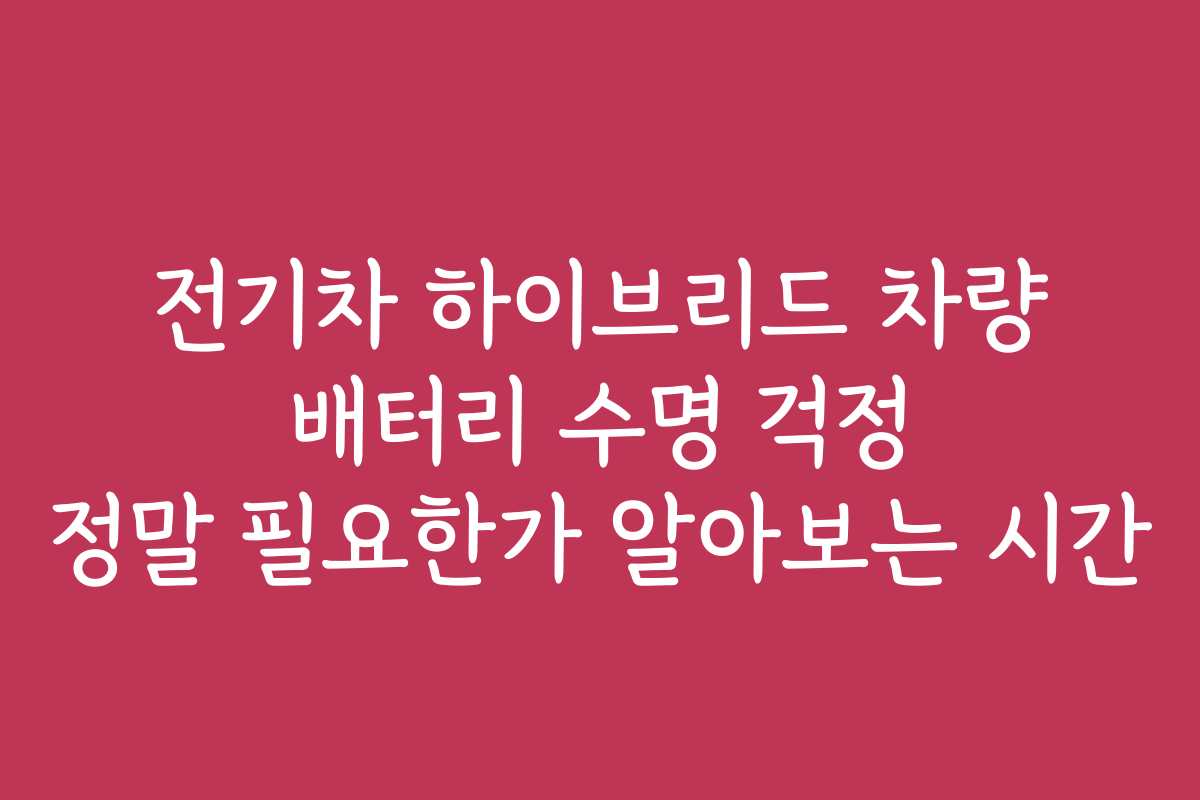 전기차 하이브리드 차량 배터리 수명 걱정 정말 필요한가 알아보는 시간