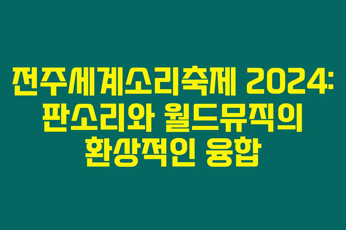 - 1. 전주세계소리축제의 모든 것: 판소리와 월드뮤직의 조화