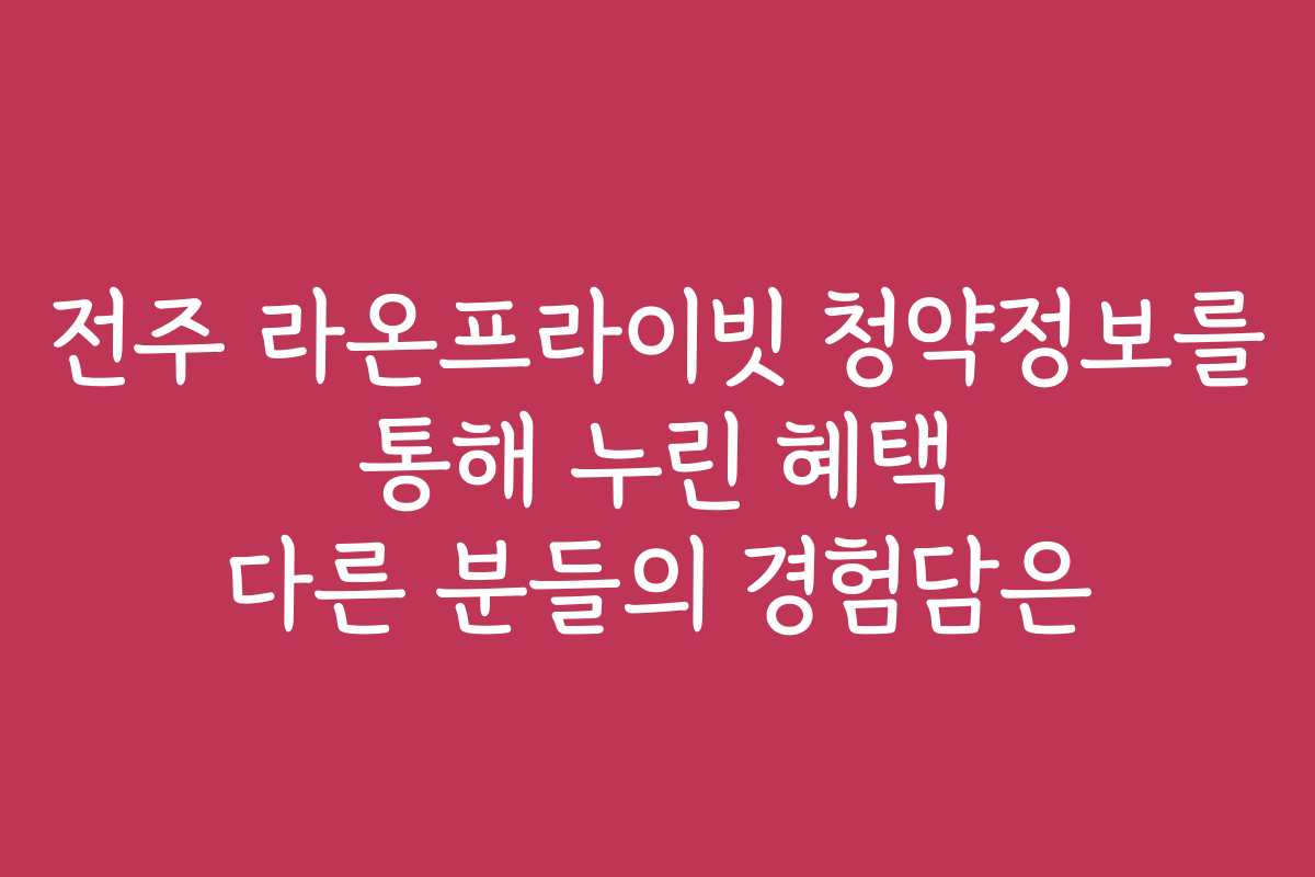 키워드: 전주 라온프라이빗 청약정보, 청약 혜택, 경험담, 주택 청약, 정보 공유