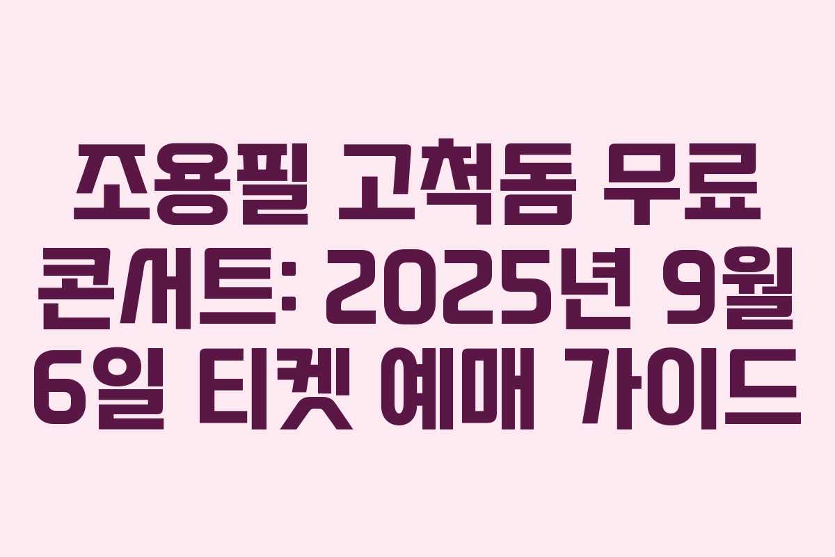 2025년 9월 6일, 조용필 고척돔 무료 콘서트가 광복 80주년을 기념하여 개최됩니다. 이번 콘서트는 전석 무료로 진행되며, 100% 추첨제로 운영됩니다. 티켓 신청은 7월 25일부터 8월 3일까지 KBS 공식 홈페이지에서 가능하니, 데뷔 57주년을 맞이한 조용필 선생님의 특별한 무대를 놓치지 않도록 예매 방법과 당첨 전략을 미리 알아보는 것이 중요합니다.