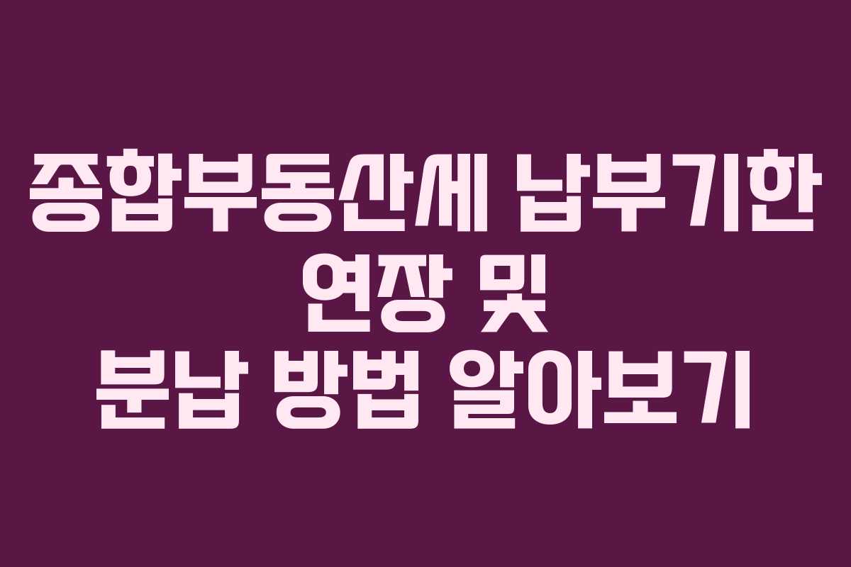 종합부동산세(종부세)는 부동산 소유자에게 부과되는 세금으로, 매년 12월에 납부해야 합니다. 이번 글에서는 종부세의 납부기한 연장 신청 방법, 납부유예 제도, 분납 방법 및 과세대상에 대해 알아보겠습니다.