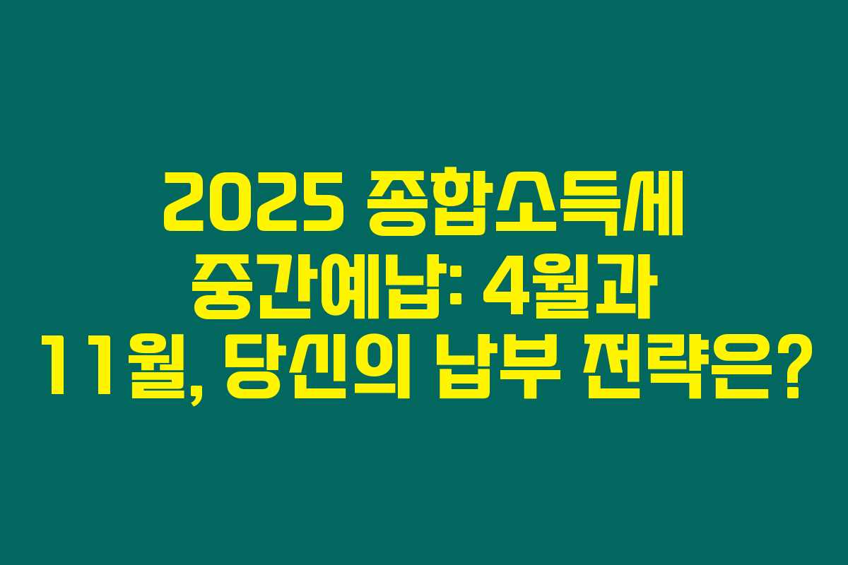 제가 직접 경험해본 바로는, 2025년의 종합소득세 중간예납에 대한 정보는 특히 개인사업자에게 중요한 문제입니다. 4월과 11월에 각각 시행되는 중간예납은 그 대상과 방법이 상이하므로, 이를 정확히 이해하는 것이 필요하답니다. 이 글에서는 두 개의 중간예납 제도, 즉 성실신고 확인 대상자에게 해당하는 4월 납부와 일반 중간예납에 해당하는 11월 납부 방법과 차이점을 총정리합니다.