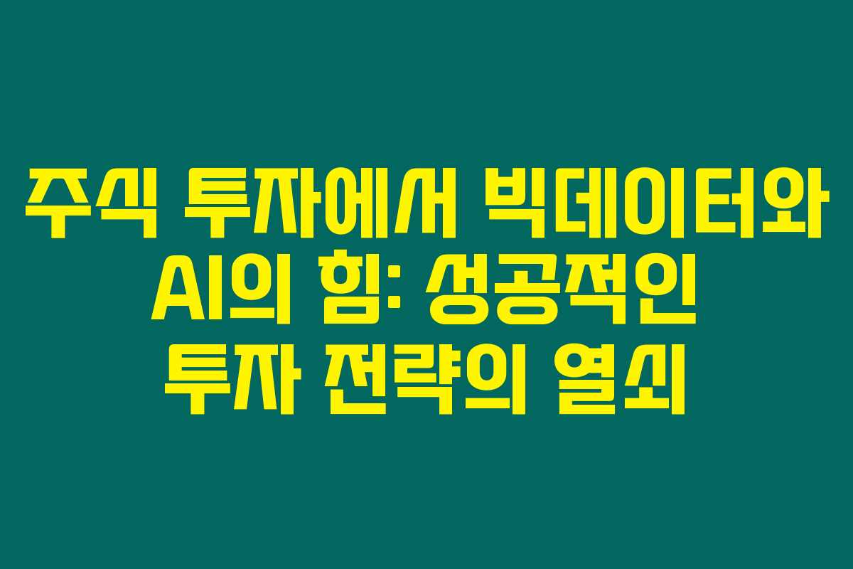 저변에서 빅데이터와 인공지능(AI)이 어떻게 형성되고 있는지를 이해하는 것이 필수적입니다. 아래를 읽어보시면 이 두 기술이 어떻게 효과적으로 결합되어 투자 전략에 혁신적인 변화를 가져오는지 확인할 수 있습니다.