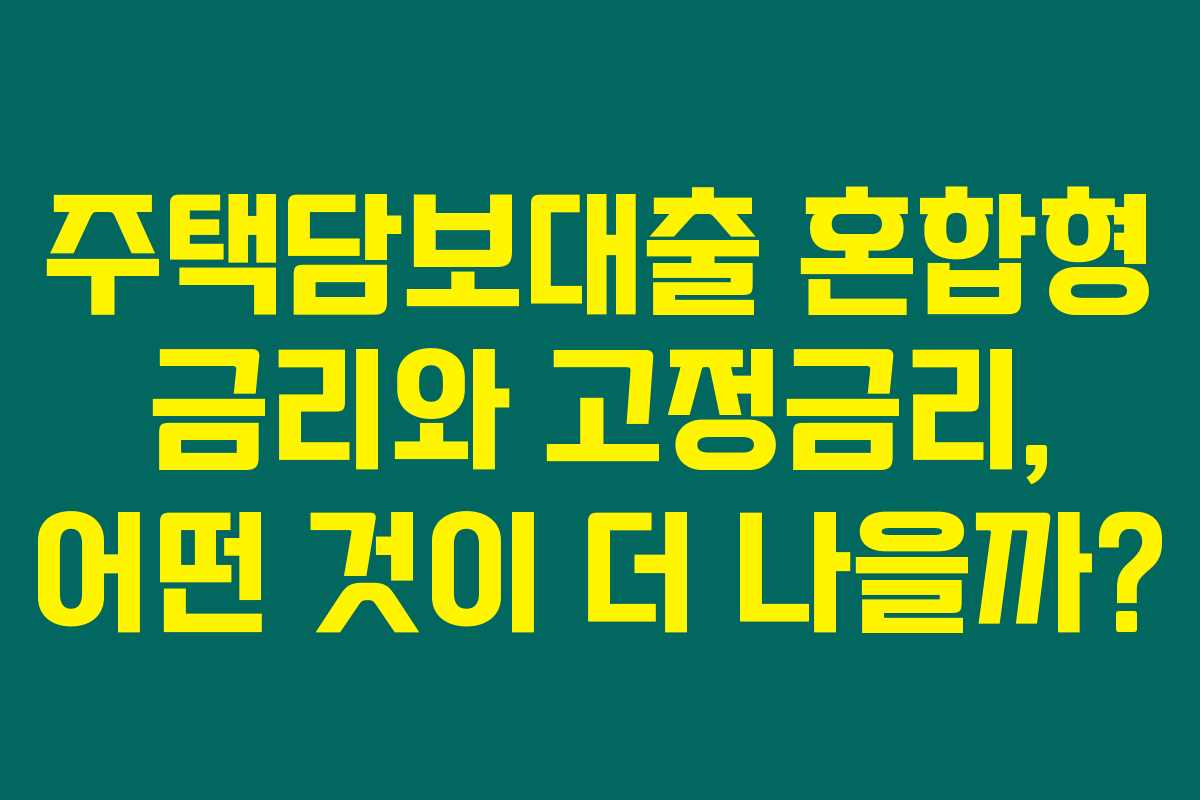 제가 직접 알아본 바로는, 주택담보대출을 고려하는 많은 분들이 혼합형 금리와 고정금리 중 어떤 것을 선택해야 할지 고민이 많더라고요. 주택담보대출은 금리가 대출 상환에 큰 영향을 미치기 때문에, 올바른 선택이 중요하답니다. 아래를 읽어보시면 이러한 두 가지 옵션의 차이점과 장단점을 명확히 이해하는 데 도움이 될 거예요.