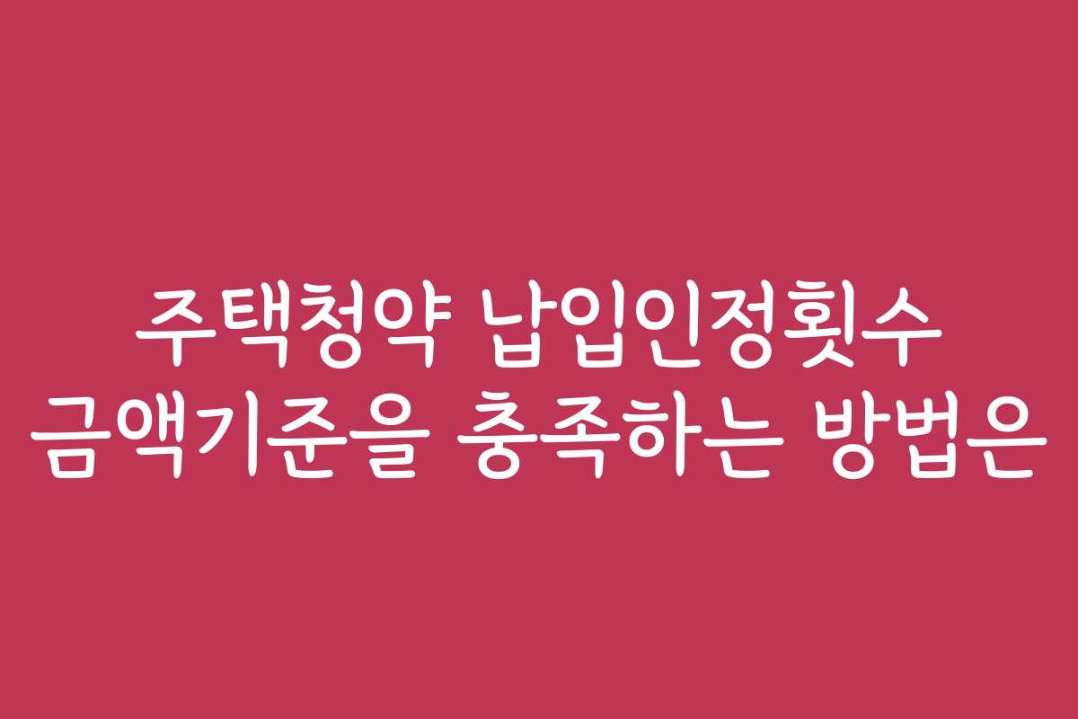주택청약의 납입인정횟수와 금액기준을 충족하기 위해서는 정기적으로 납입하는 것이 중요합니다. 매달 일정 금액을 납입하면 자연적으로 횟수와 금액을 충족시킬 수 있습니다. 기본적으로는 매달 최소 금액을 납입하는 것을 추천드립니다. 예를 들어, 10만 원을 매달 납입하면 1년 후 120만 원이 됩니다.
