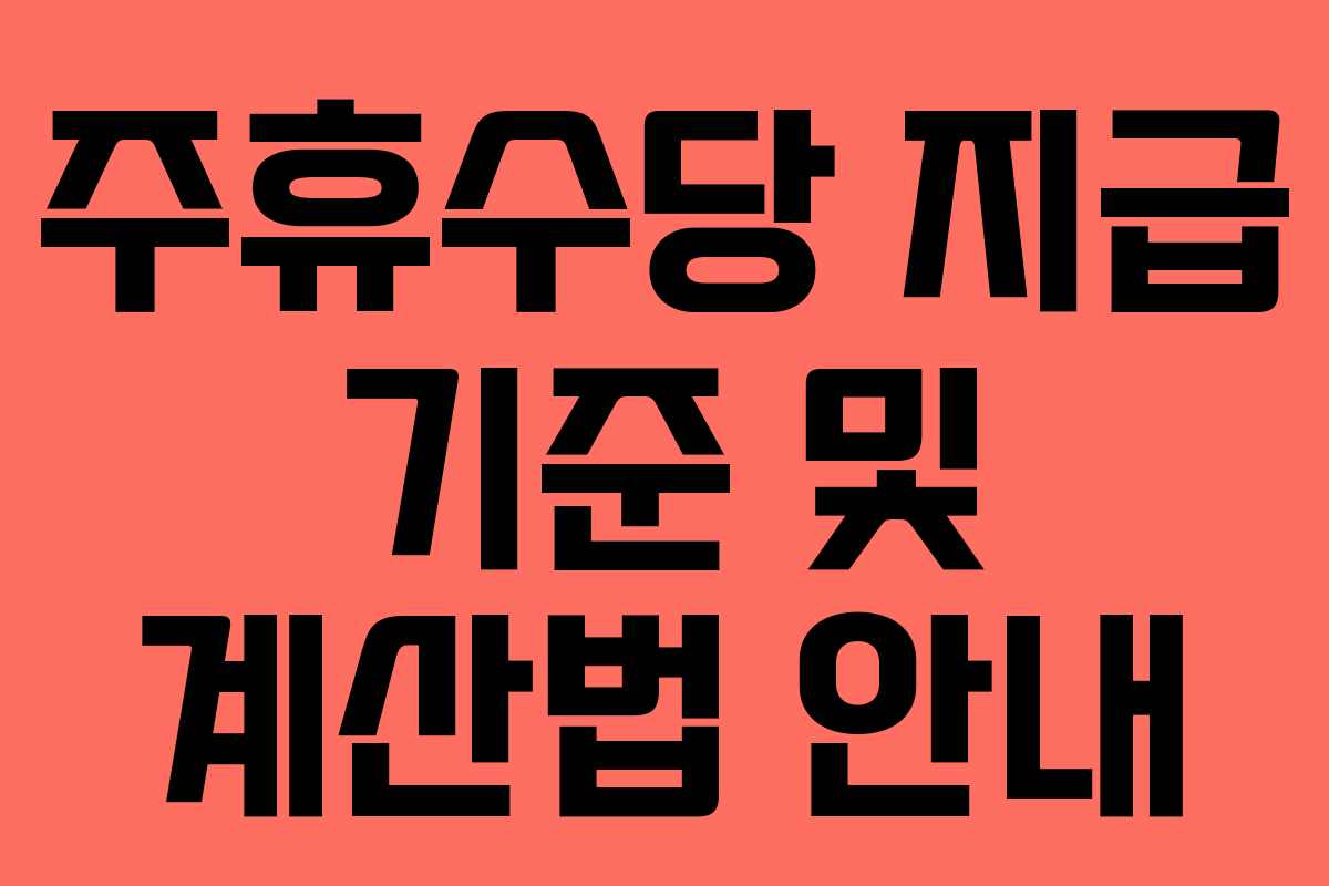 주휴수당은 근로자가 일정 조건을 충족할 때 지급받는 급여로, 노동자에게 중요한 권리 중 하나입니다. 이번 글에서는 주휴수당의 지급 기준과 계산법에 대해 자세히 알아보겠습니다.