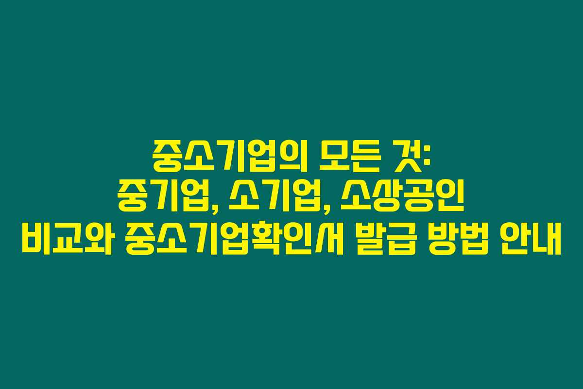 제가 직접 경험해본 결과로는 중소기업은 우리 경제의 뿌리이자 핵심 요소임을 실감하게 되었어요. 현재 우리나라의 중소기업은 수많은 일자리와 경제적 가치를 창출하고 있는데요, 다양한 중소기업의 종류와 구분, 그리고 중소기업확인서 발급 방법까지 알아보면, 창업이나 사업 발전에 많은 도움이 될 것입니다. 아래를 읽어보시면 중소기업의 종류와 특징에 대해 자세히 알아볼 수 있습니다.