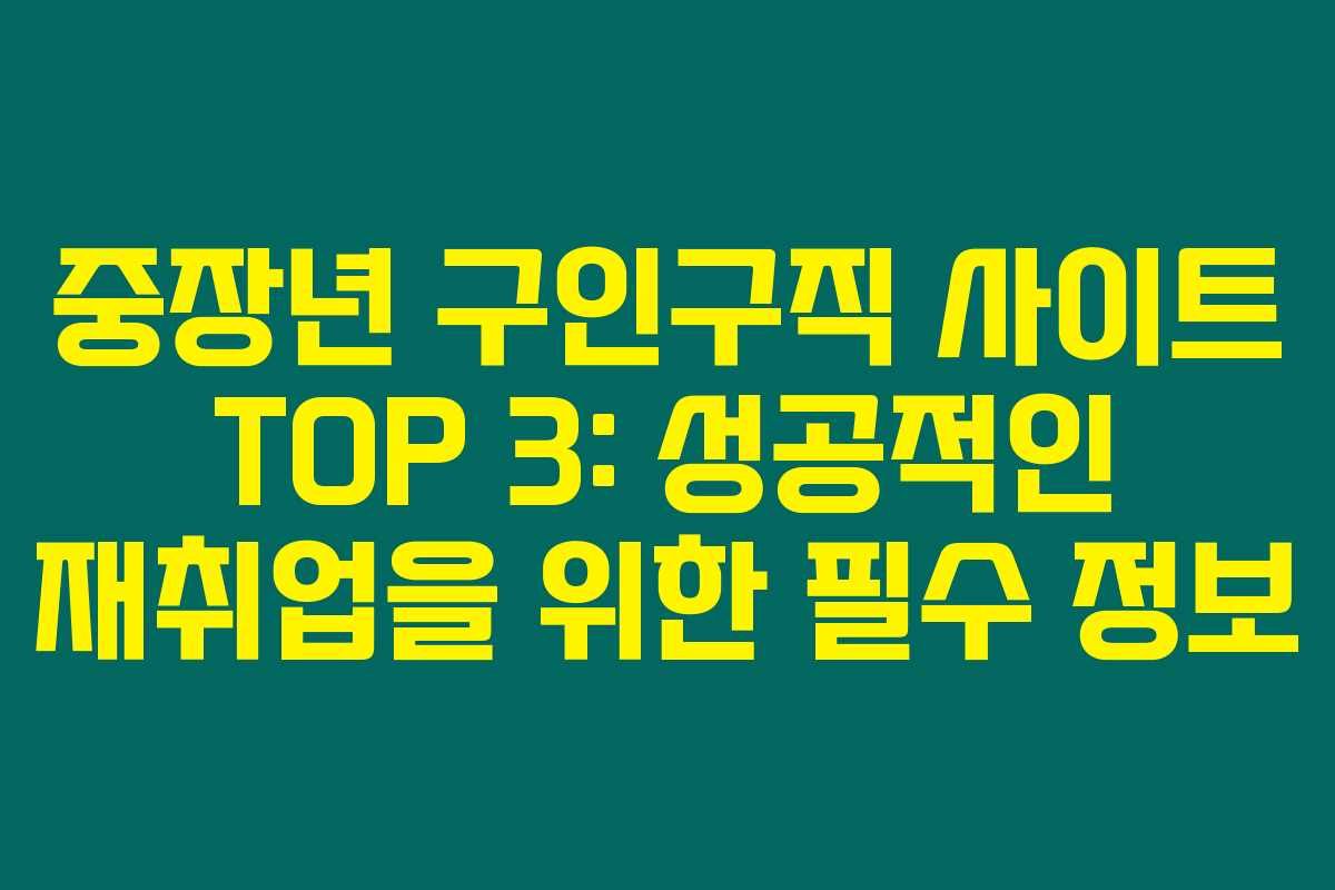 중장년층 여러분, 재취업에 나서고 있나요? 요즘 같이 빠르게 바뀌는 직업 시장에서 중장년층 구직자에게 맞춤형 지원이 필요한 상황이죠. 중장년 구인구직 사이트 TOP 3을 확인하고 자신의 경력을 최대한 활용해보세요. 아래를 읽어보시면, 각 사이트의 특징과 혜택을 확인할 수 있습니다. 취업 지원에 필요한 소중한 정보를 놓치지 마세요!
