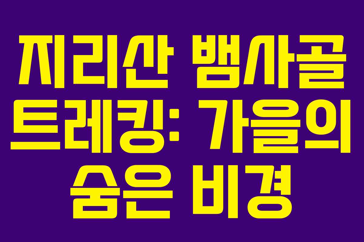 지리산 뱀사골 트레킹: 가을의 숨은 비경