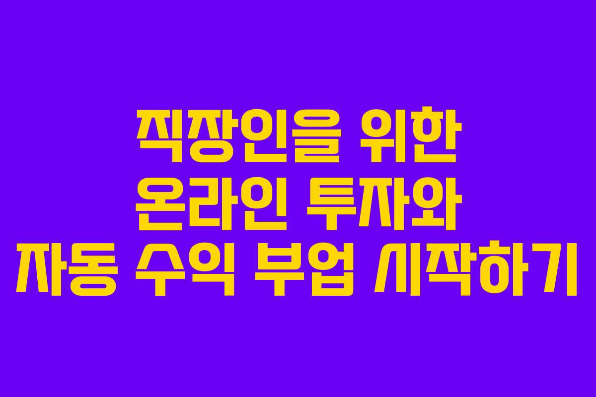 직장인이 투자 부업을 시작하는 가장 좋은 방법은 무엇인가요?