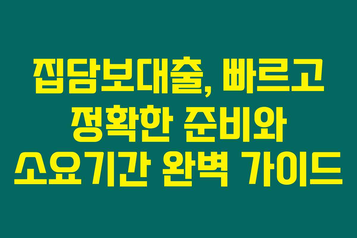 집담보대출을 신청할 때 필요한 서류와 절차, 그리고 소요 기간에 대한 정보를 잘 알고 준비하면 더욱 원활한 대출 과정을 경험하실 수 있습니다. 주택 구매나 자금 마련에 대한 고민을 덜고, 효과적인 대출을 통해 원하는 목표를 이루시길 바랍니다.