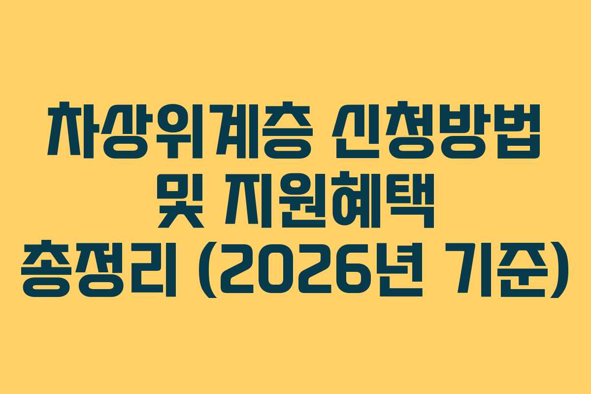 2026년 현재 많은 가구들이 경제적으로 어려움을 겪고 있는 가운데, 정부는 이를 해결하기 위해 다양한 복지 제도를 운영하고 있습니다. 그중 하나가 바로 차상위계층 지원 제도입니다. 이 제도를 통해 선정된 가구는 의료비 지원, 교육비 지원, 통신비 감면 등 여러 혜택을 받을 수 있습니다. 이번 글에서는 차상위계층의 신청방법, 지원 대상, 그리고 지원 혜택을 종합적으로 정리해보겠습니다.