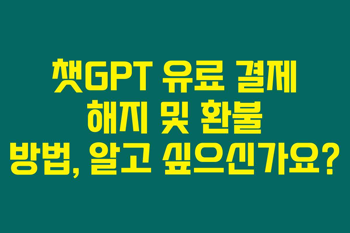 여러분이 궁금해하시는 사항에 대해 말씀드리겠습니다. 챗GPT 유료 결제 해지 및 환불 방법에 대해 알아보겠습니다. 제가 직접 경험해본 결과로는, 챗GPT의 유료 서비스는 매우 유용하지만 어떤 이유로든 해지를 고려하실 수 있습니다. 따라서 아래를 읽어보시면 해지 및 환불 절차에 대한 구체적인 정보를 확인하실 수 있어요.