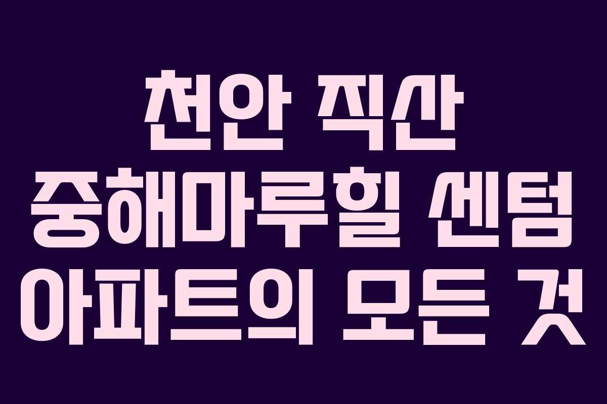 - 천안 직산 중해마루힐 센텀 아파트의 특별한 장점