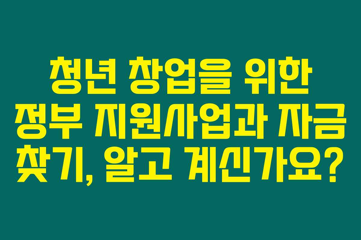 청년 창업을 위한 정부 지원사업은 매우 다양한 프로그램이 있으며, 이를 통해 성공적인 사업을 시작할 수 있습니다. 필요한 정보들을 잘 활용하여 원하는 자금을 확보하시길 바라요. 궁금한 점이 있으면 언제든지 댓글 남겨주시면 답변드릴게요!