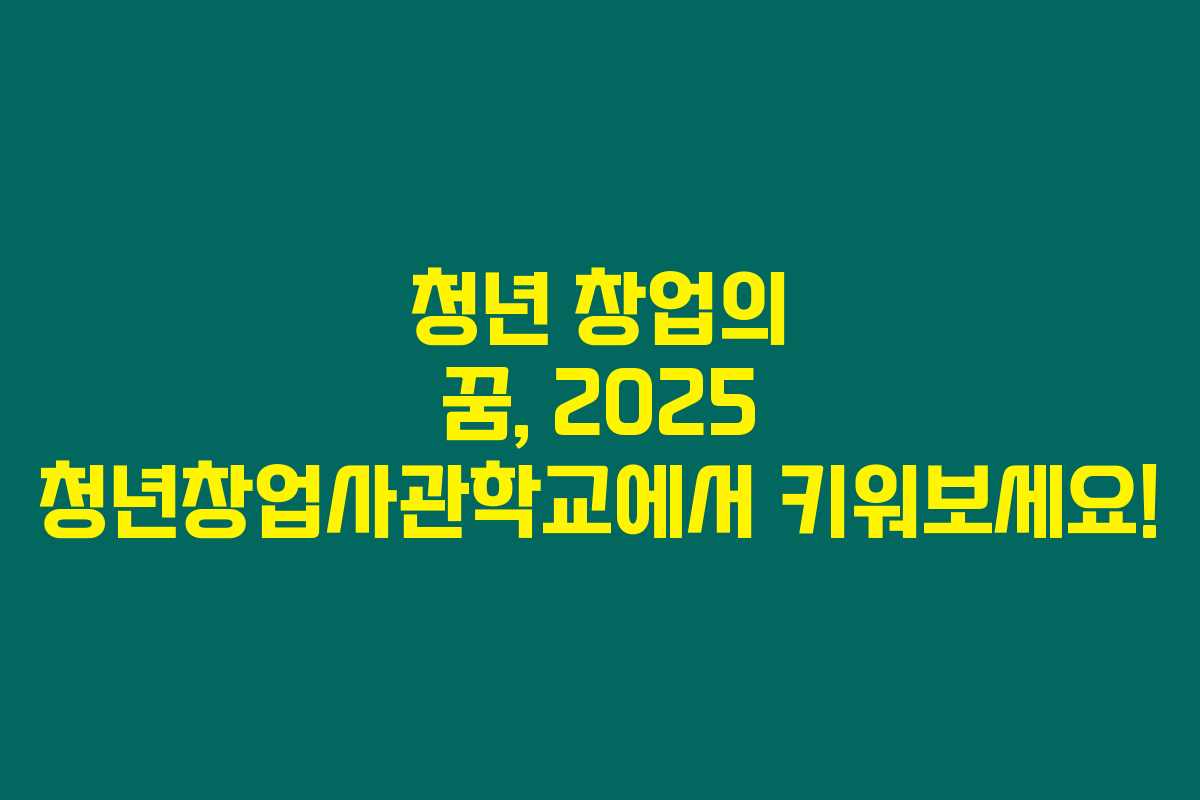 청년 창업의 꿈, 2025 청년창업사관학교에서 키워보세요!