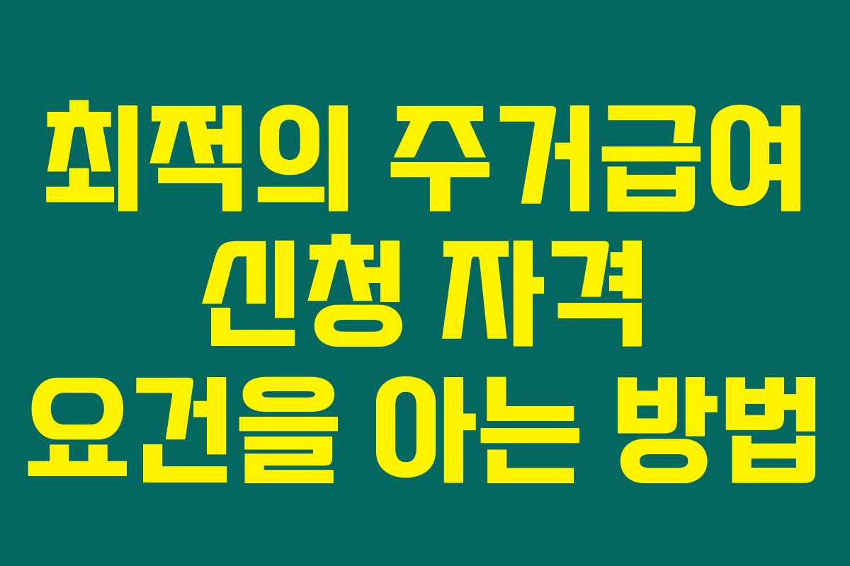 주거급여는 국가가 지원하는 만큼, 신청 자격 요건이 엄격하게 정해져 있습니다. 지원 받을 수 있는지 확인하려면 주거급여가 무엇인지 명확히 이해하는 것이 중요해요.