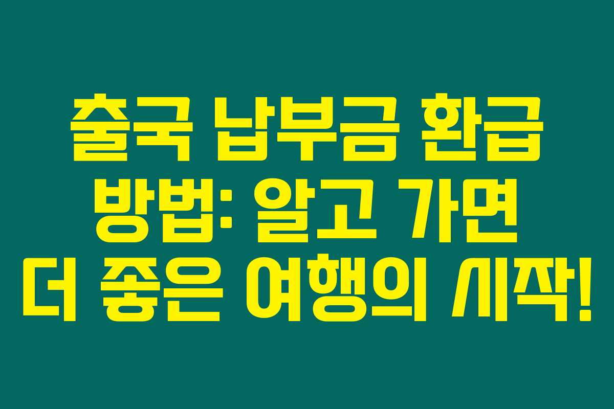 출국 납부금 환급 방법: 알고 가면 더 좋은 여행의 시작!