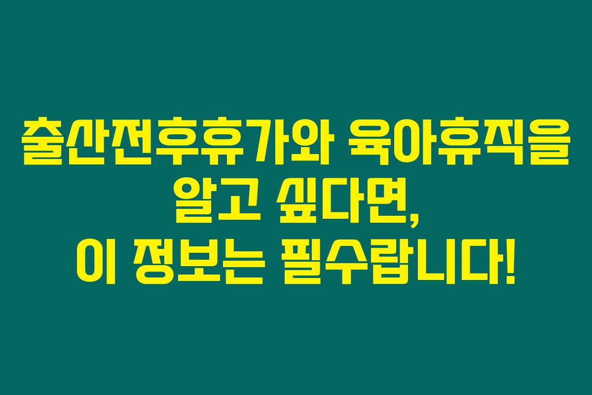 출산전후휴가와 육아휴직은 많은 부모들에게 중요한 정보인데요. 혹시 출산휴가나 육아휴직을 사용하고 싶으신가요? 그렇다면 아래 내용을 꼭 확인해보세요. 복잡해 보이지만 의외로 쉽게 이해할 수 있답니다!