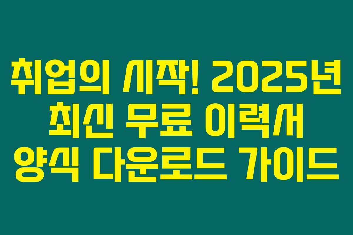 이렇게 2025년 최신 무료 이력서 양식 다운로드 가이드를 통해 준비가 잘 되셨길 바라요! 이제 모든 준비가 끝났으니, 아래 링크에서 원하는 양식을 다운로드하고 좋은 결과 얻으세요!