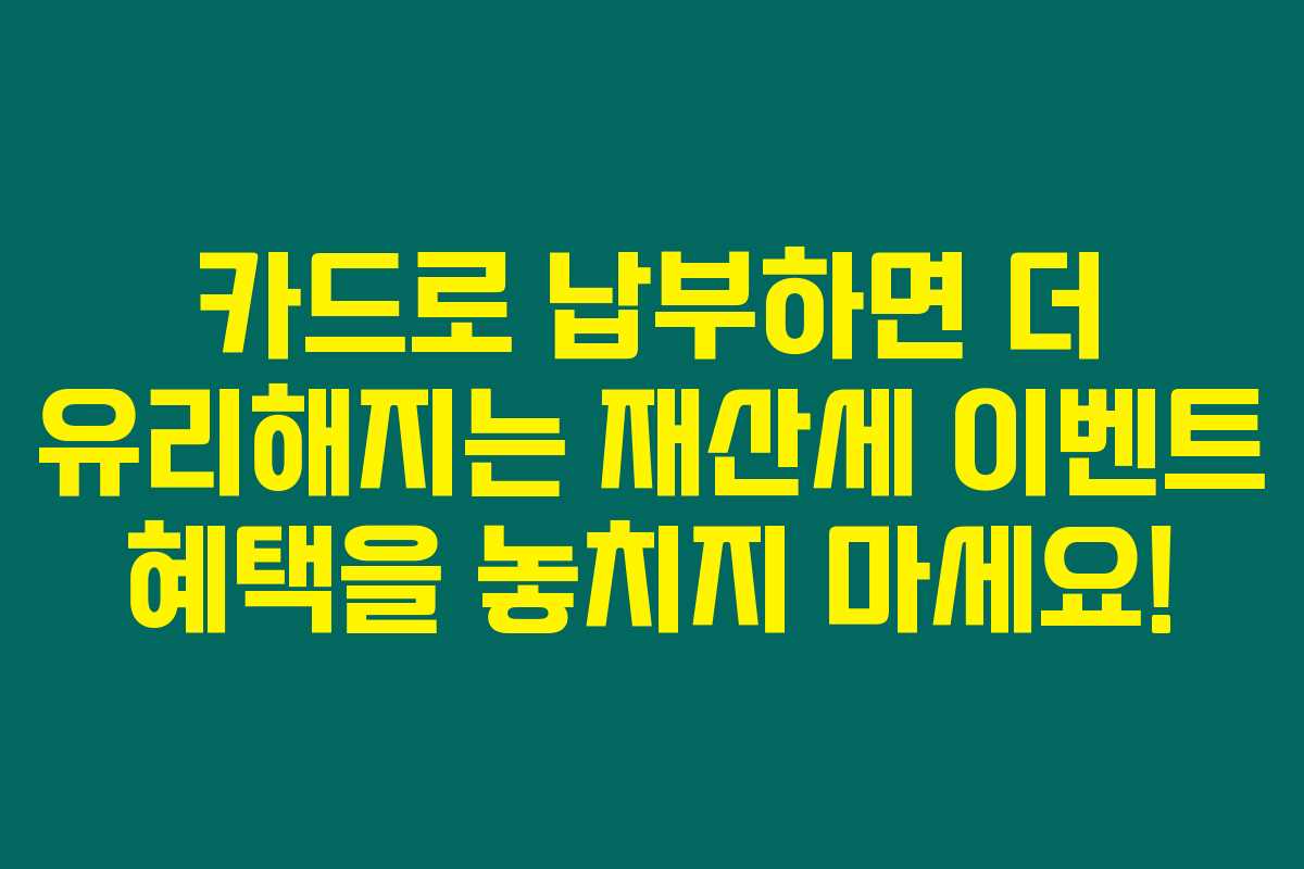 재산세 카드납부를 통해 각 카드사별 다양한 혜택을 받을 수 있습니다. 예를 들어, 캐시백, 포인트 적립, 쿠폰 제공 등이죠.