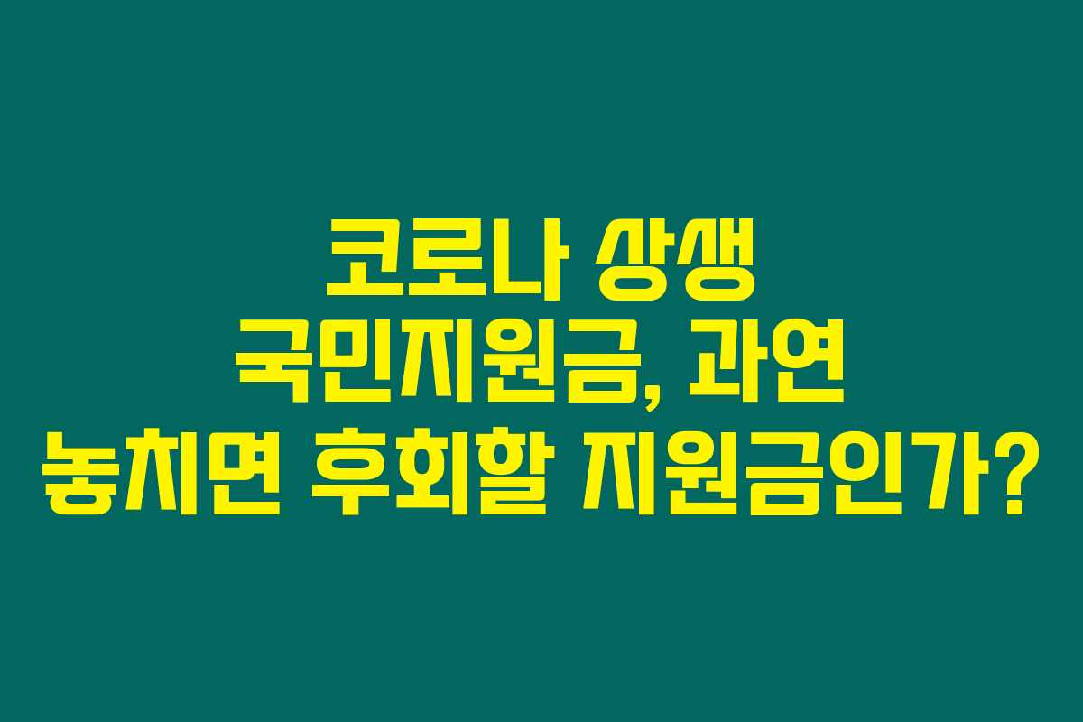 코로나 상생 국민지원금, 과연 놓치면 후회할 지원금인가?