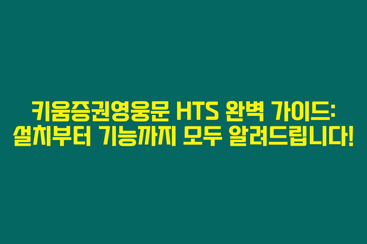 키움증권영웅문 HTS 완벽 가이드: 설치부터 기능까지 모두 알려드립니다!