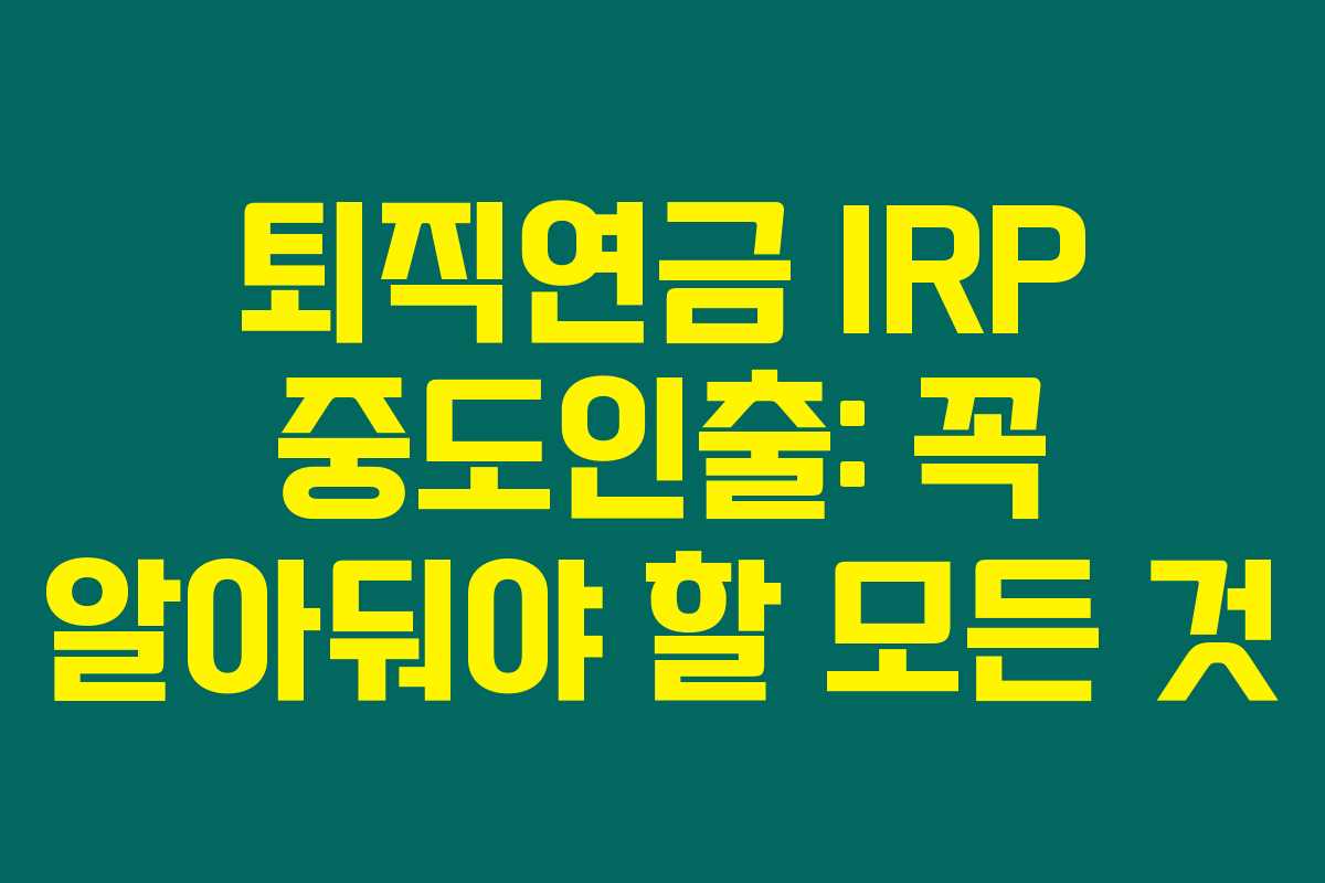 제가 직접 리서치해본 바로는, 퇴직연금 IRP의 중도인출이나 중도해지는 많은 사람들이 모르고 있는 중요한 사항이랍니다. 사실 중도인출이나 중도해지는 몇 가지 특별한 상황이 있어야만 가능하기 때문에 미리 알아두는 것이 중요해요. 아래를 읽어보시면, 퇴직연금 IRP의 중도인출과 중도해지에 대해 더 깊이 이해할 수 있을 거예요.