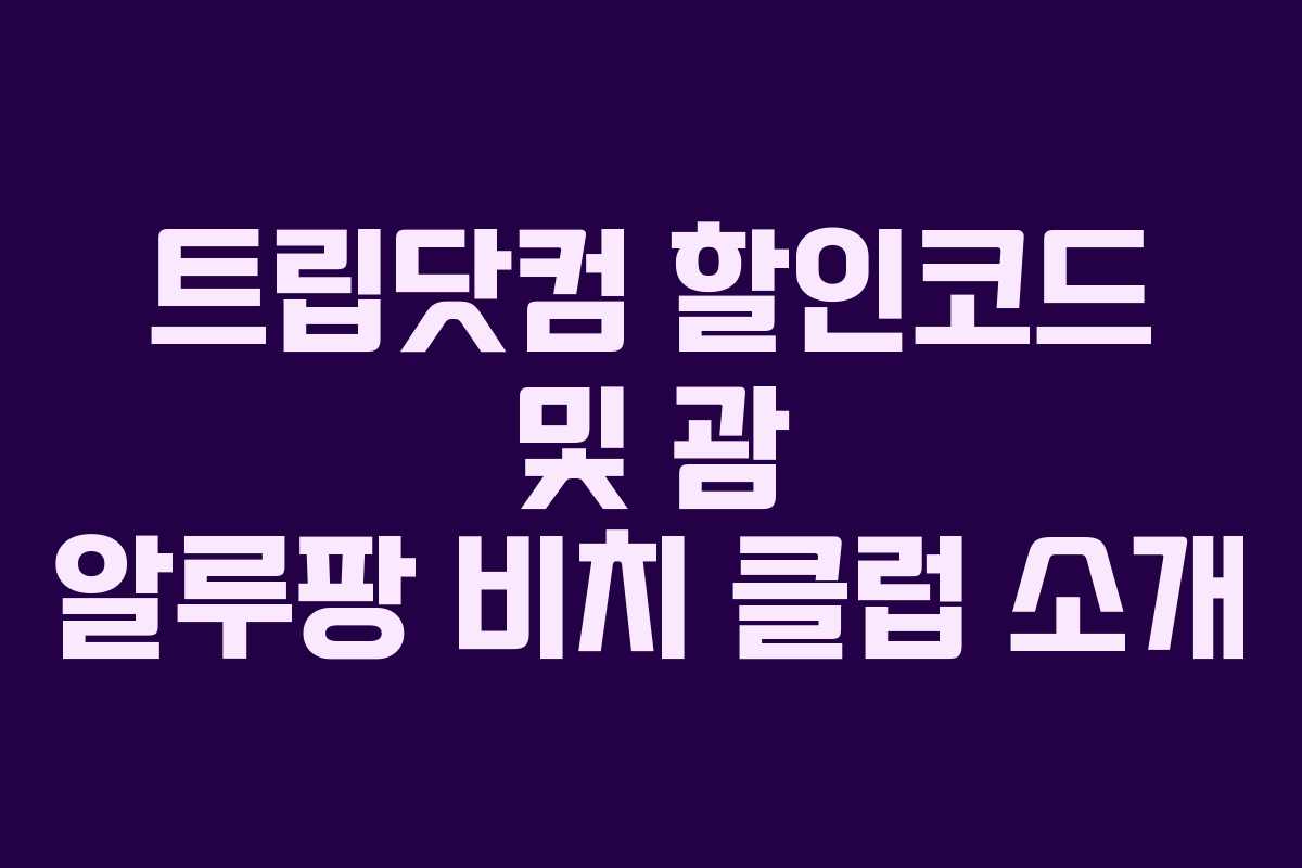 여행을 계획하는 모든 분들을 위해 트립닷컴에서 제공하는 할인코드와 괌의 인기 명소인 알루팡 비치 클럽에 대한 정보를 소개합니다. 이 글을 통해 알뜰하게 여행을 즐기세요.
