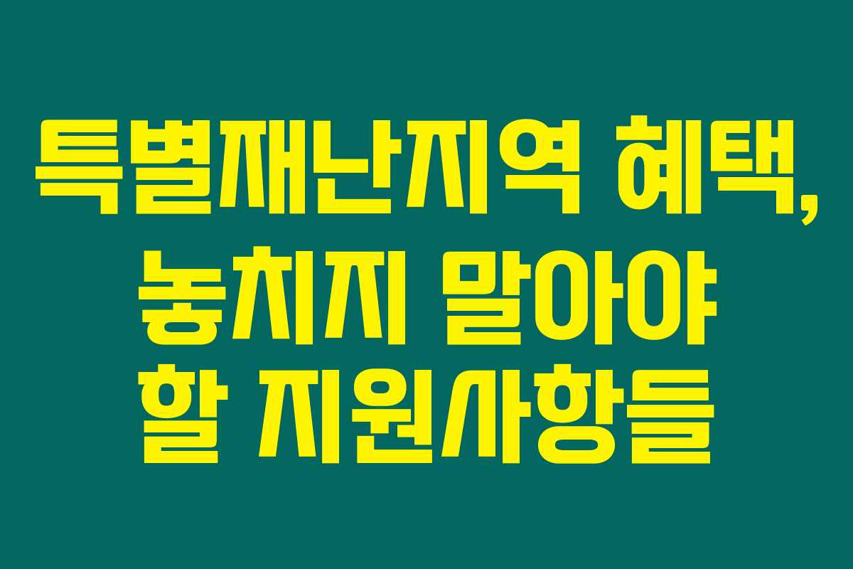 이렇게 특별재난지역의 혜택을 잘 이해하고 지원받기 위해 철저히 확인해야 해요! 다양한 도움이 준비되어 있으니 주저하지 말고 신청해 보세요!