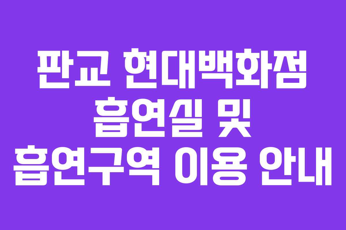 판교 현대백화점은 경기도 성남시 분당구에 위치한 프리미엄 쇼핑 공간으로, 다양한 명품 브랜드와 푸드코트를 갖추고 있어 연간 500만 명 이상의 방문객이 찾고 있습니다. 백화점 내의 흡연 공간은 흡연자와 비흡연자 모두를 고려하여 설계되었습니다.