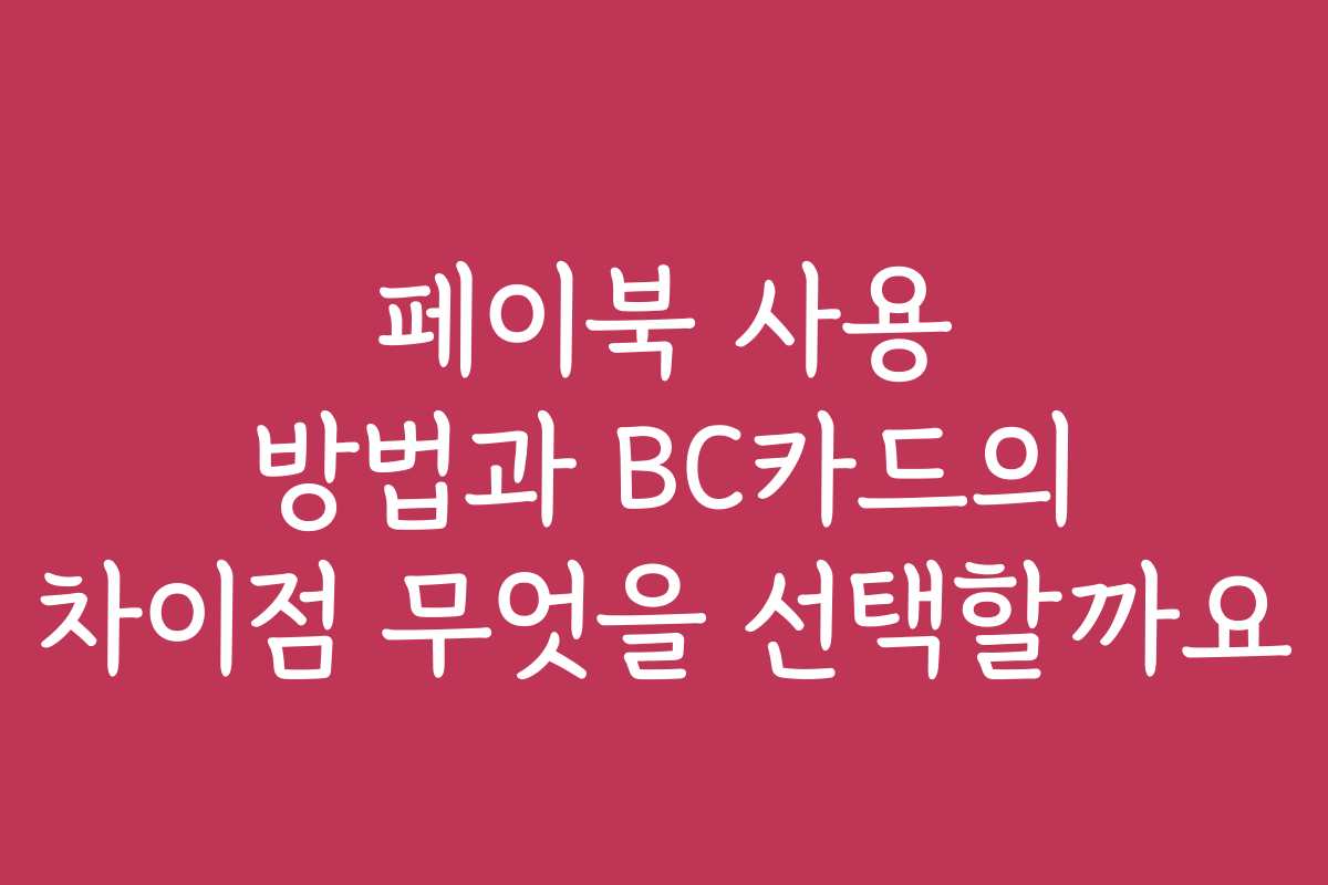 핵심 키워드: 페이북 사용 방법, BC카드 차이점, 결제 서비스 비교, 모바일 결제, 신용카드 서비스, 할인 혜택, 포인트 적립, 사용 편의성, 선택 가이드, 소비 스타일, 자주 묻는 질문