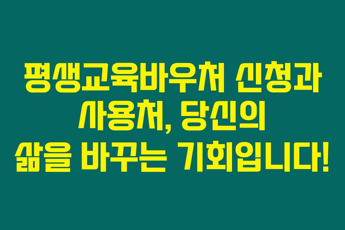 제가 알아본 바로는, 평생교육바우처는 다양한 교육 기회를 제공하여 우리의 삶을 한층 더 풍요롭게 만드는 중요한 제도입니다. 이 바우처를 통해 우리는 학점은행제를 통한 학위 취득, 전문 자격증 취득, 그리고 문화예술 교육까지 다양한 분야의 강좌를 수강할 수 있게 됩니다. 아래를 읽어보시면, 이 바우처 신청 방법과 사용처에 대해 더 자세히 알아보실 수 있습니다.