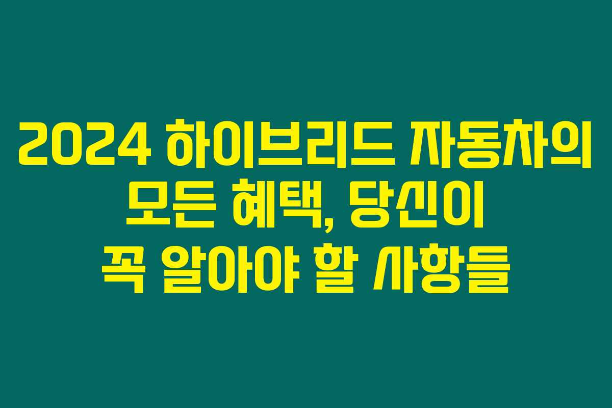 2024 하이브리드 자동차의 모든 혜택, 당신이 꼭 알아야 할 사항들