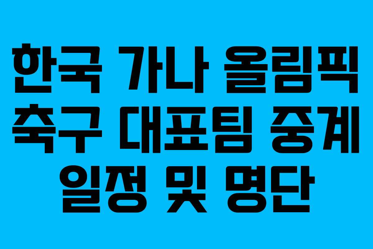 한국 가나 올림픽 축구 대표팀 중계 일정 및 명단
