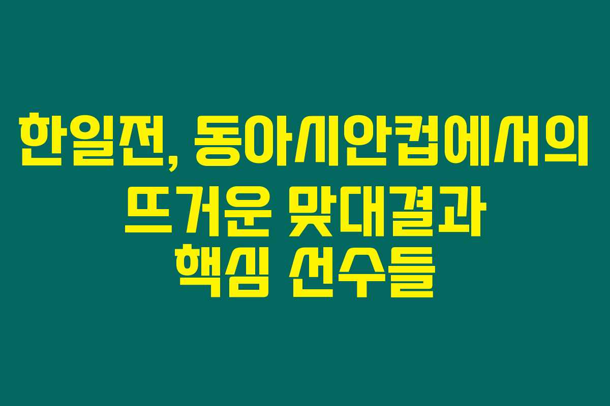 2025년 동아시안컵 한일전은 7월 15일, 용인 미르 스타디움에서 펼쳐질 예정입니다. 오랜 Rivalry와 명승부의 역사를 가진 두 팀의 경기는 축구 팬들에게 항상 큰 기대를 모으지요. 아래를 읽어보시면 이번 한일전에서 주목해야 할 핵심 선수들과 무료 중계 링크에 대해 자세히 알아보실 수 있습니다.