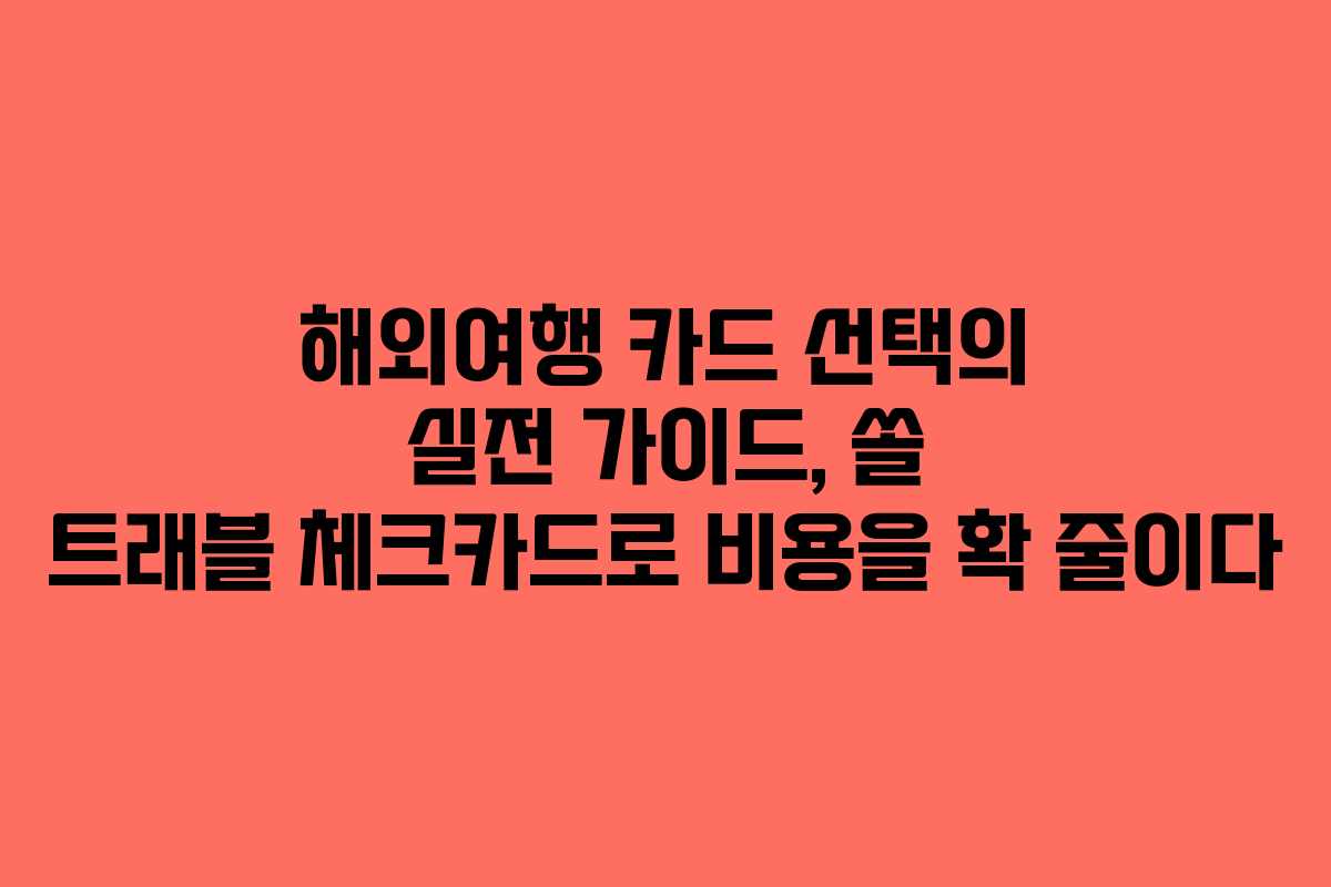 해외여행 카드 선택의 실전 가이드, 쏠 트래블 체크카드로 비용을 확 줄이다