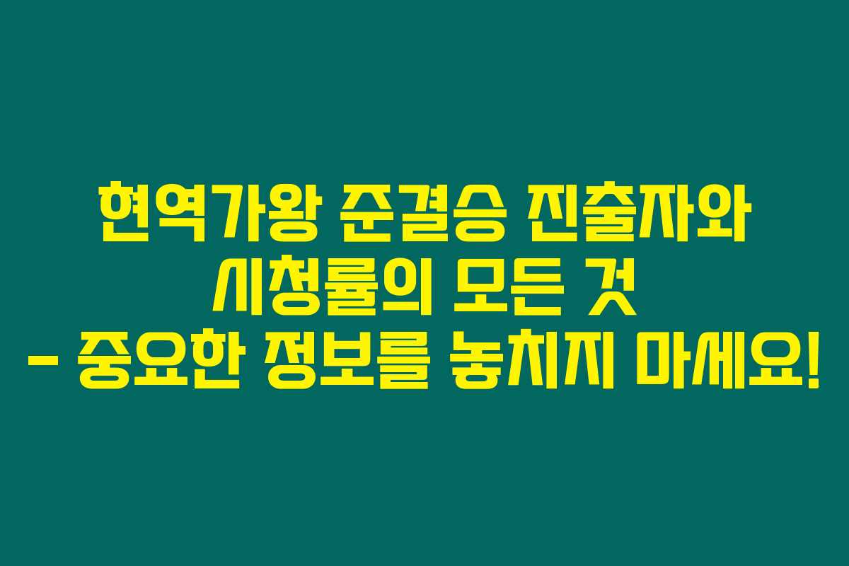 현역가왕을 좋아하는 팬이라면 이번 준결승 진출자 14명과 그 시청률이 궁금할 텐데요. 혹시 응원 투표에 참여하셨나요? 그러면 이번 글에서 알아야 할 모든 정보를 앞서 설명드립니다. 현역가왕의 현황을 알고 싶다면 아래를 꼭 읽어보세요!