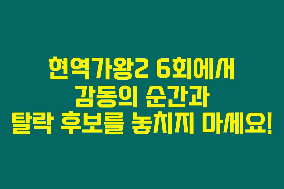 아쉬운 순간을 놓치셨다면 걱정하지 마세요! 현역가왕2 6회는 재방송과 다시보기를 통해 언제든지 볼 수 있답니다.