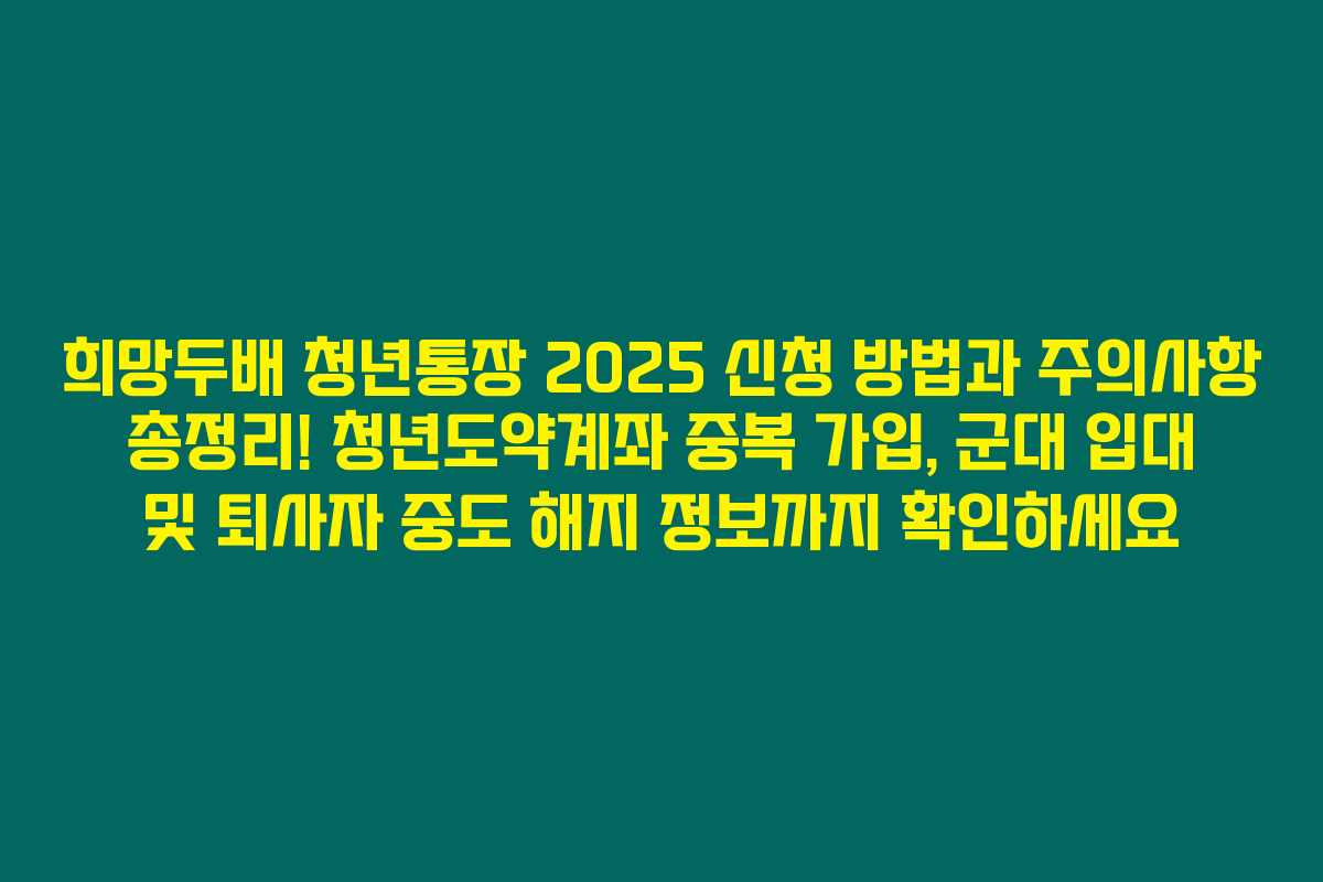 군대 입대 시: 군 복무 중에는 가입이 어려워요. 입대 전에 신청하더라도 이후 은행 방문이 어렵다면 선정에서 제외되니까 사전에 유의해야 해요.
