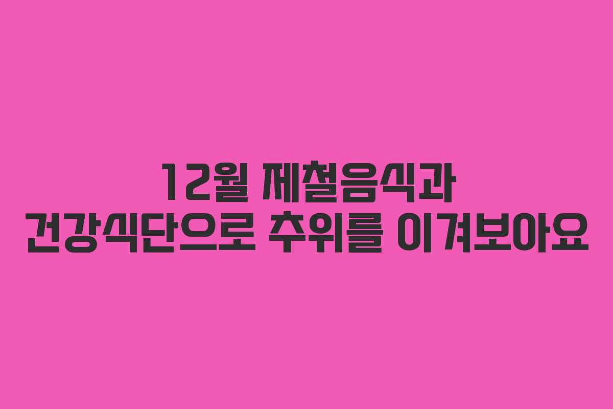 겨울이 본격적으로 시작되는 12월, 추위에 대비하기 위해 건강 관리가 중요한 시기입니다. 특히 이 시기에는 감기에 걸리기 쉬우므로, 적절한 운동과 제철 음식을 중심으로 균형 잡힌 식단을 유지하는 것이 필요합니다. 이번 글에서는 건강한 식단과 12월의 제철 음식을 소개하겠습니다.